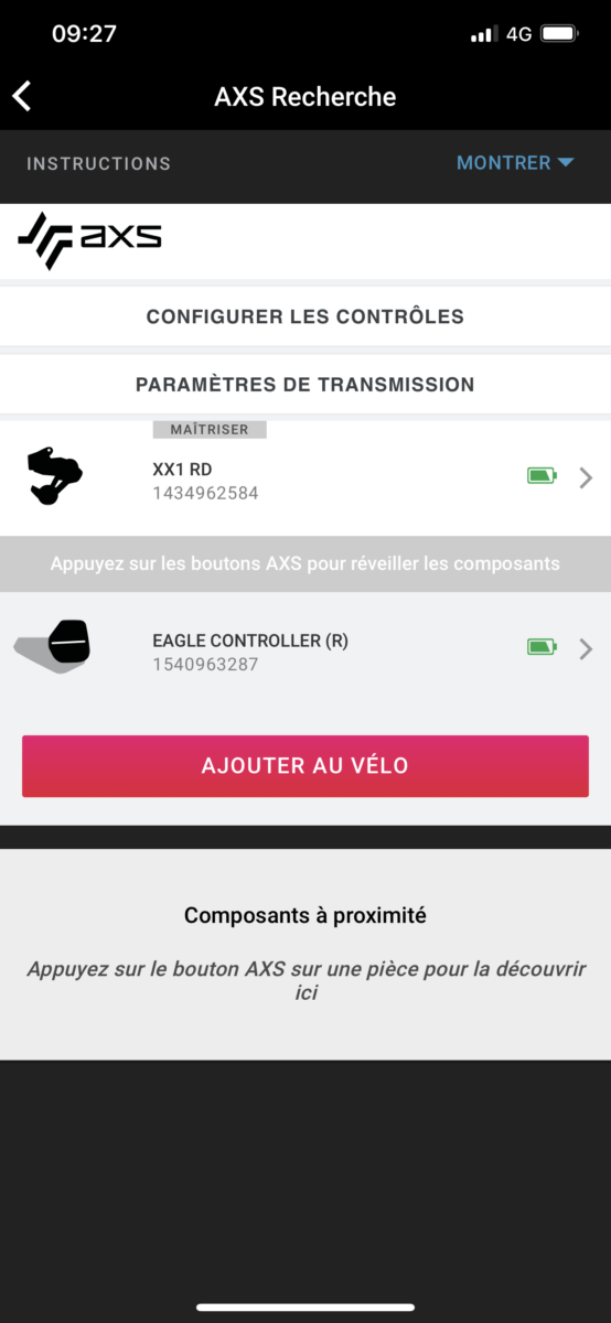 un seul système AXS peut être attribué au vélo. Associez tous vos composants dans un système pour une fonctionnalité complète