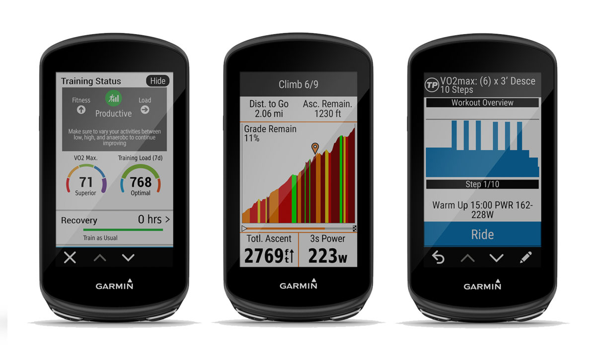 L’autre grande nouveauté, GARMIN a mis l’accent sur la fonction d’accompagnement et de gestion de l’activité physique. En fonction de la fréquence et d’un ensemble de paramètres analysées par le EGDE 1030 PLUS, il sera en capacité de vous suggérer des entraînements adaptés sur la journée. On retrouve un ensemble de fonctionnalités comme la possibilité de connecter le EDGE à un home-trainer et suivre un parcours, un entrainement, etc.