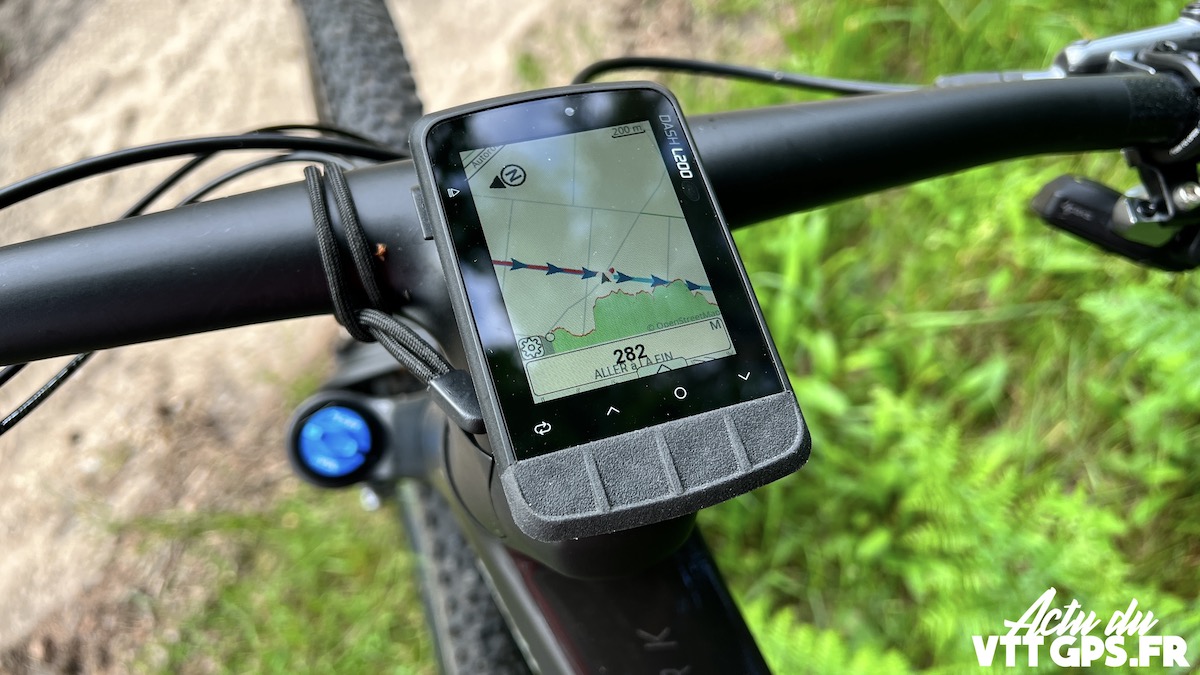 Le DASH ne dispose pas dâune navigation avec toute une signalĂ©tique de flĂšches, dâinformations de distance avant le prochain changement dâorientation. Câest un suivi de tracĂ© qui est collĂ© sur le fond de carte. Un ensemble de flĂšches sur le trait bleu permet de bien comprendre le sens du tracĂ©. Cependant, on a une alerte nous indiquant que nous sommes sortis de la trace. Câest le seul moment oĂč lâon a une indication de distance pour revenir sur celui-ci.